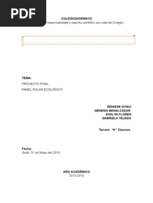 Hipotesis de un proyecto panel solar. Universidad de guayaqu il facultad de filosofìa letras y ciencias de la educaciòn medio ambiente grupo viviana cañas mendoza alexis garcìa alava mauro lopez narcisa valverde curso. Solo se realizarán pruebas durante el tiempo que dure el proyecto. Proyecto de instalación solar fotovoltaica para bloque de viviendas roberto pons tabascar página 9 la noción de energía renovable hace mención al tipo de energía que puede obtenerse de fuentes naturales virtualmente inagotables ya que contienen una inmensa cantidad de energía o bien pueden regenerarse naturalmente. De un prototipo de prueba que será probado en el campus de la udlap.