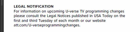 Early termination fee 15 mo. You can also view and print the channel lineup. For internet for each month remaining on agmt activation fee 35 for u verse tv equip non return add l fees apply. To check your current u verse tv account visit myat t.