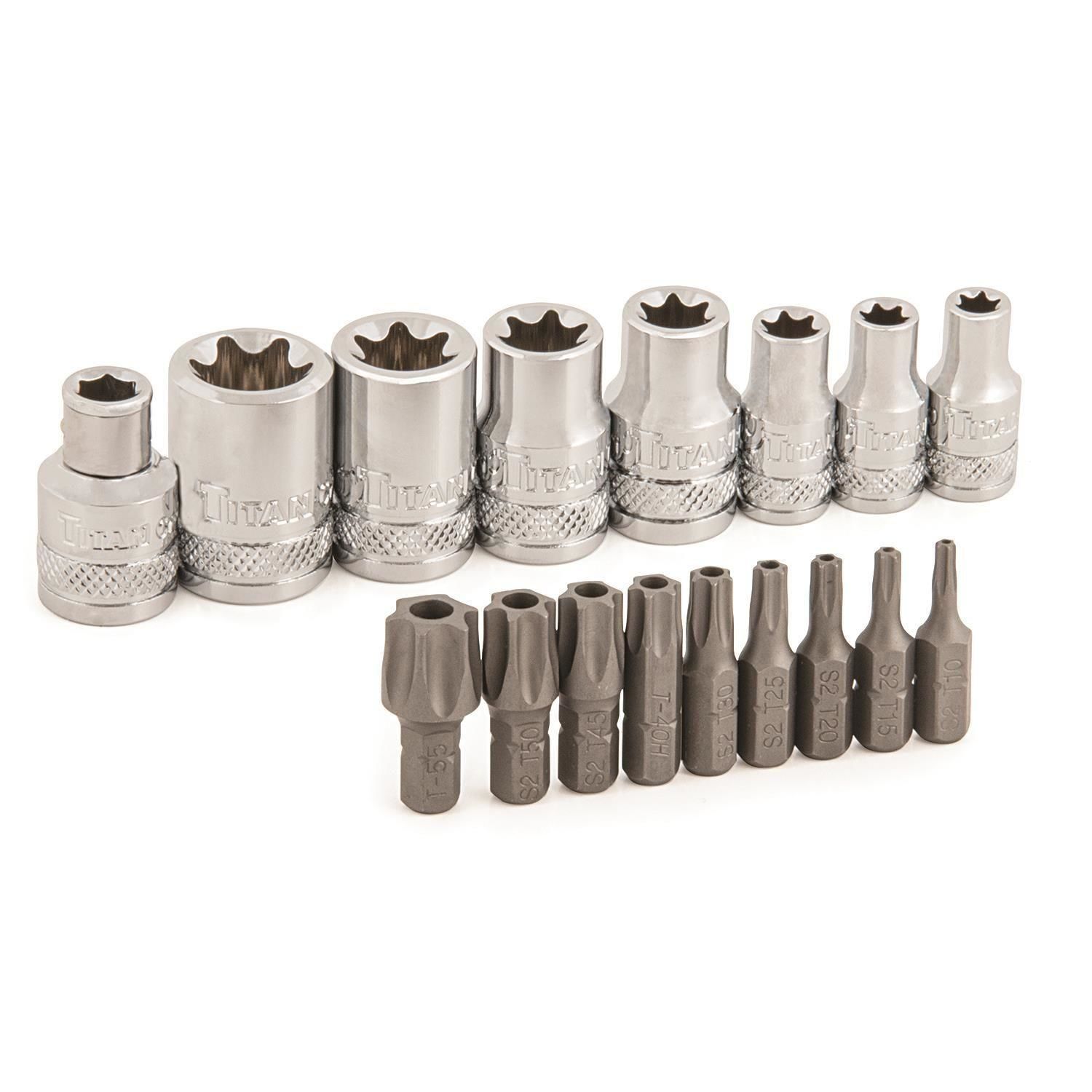 Torx socket set e type external torx star plus socket bit set cr v steel socket bits 9pc 1 2 inch drive e10 e24. 4 7 out of 5 stars 12. Free shipping by amazon. Professional torx bit socket set 12 pc.
